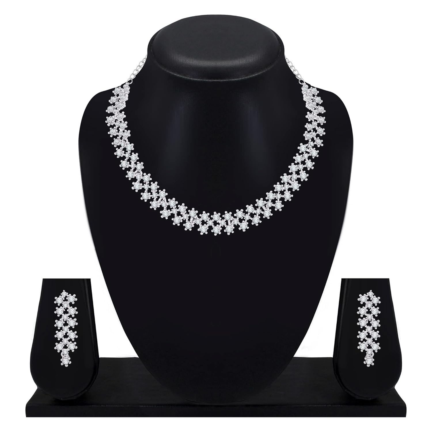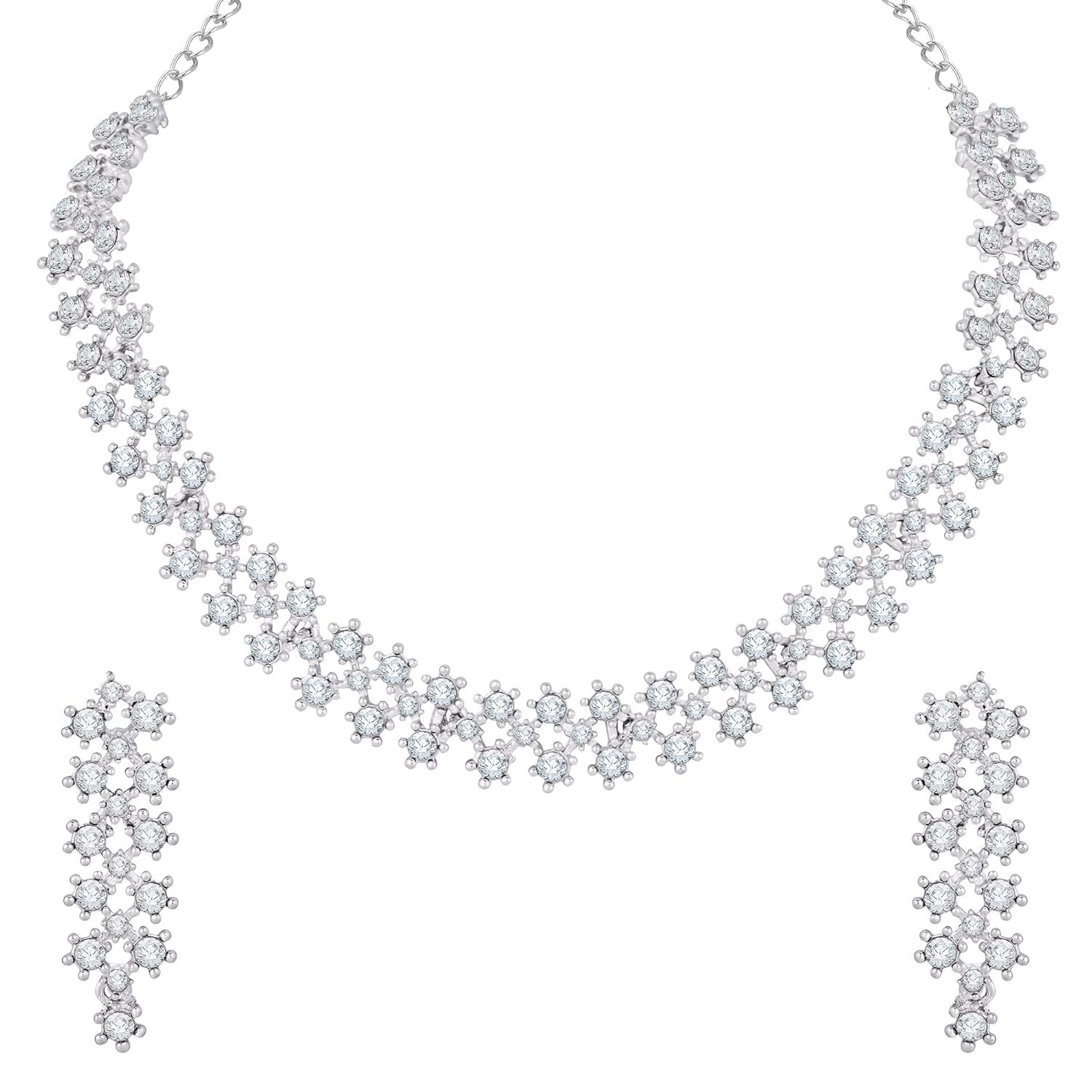 Atasi International White Stones AD Diamond Necklace with Earrings Set – Elegance Redefined