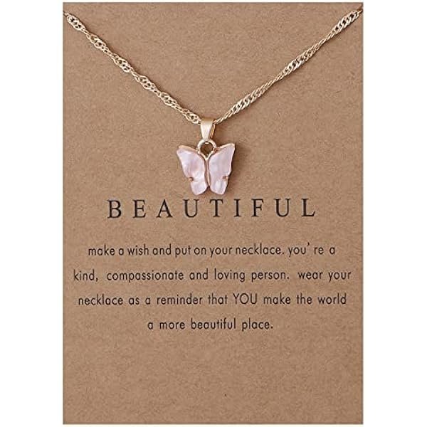 Butterfly Design:Butterfly is one of the representatives of the loyal world,because it has only one partner in its life,and it has happiness,so they are also representatives of happiness.The butterfly necklace is an excellent choice for you to express love to your loved ones. Material:This butterfly necklace is made of alloy and acrylic,nickel and lead free,comfortable to wear. Wish Card:The necklace starts with a good quality greeting card to show that you value your colleagues and more,we hope everyone get the best wishes and the sincere words from time to time pull at your heart. Adjustable Size:The length of the necklace is 43.5cm/17.1inch+5cm/1.97inch,it is adjustable,one size fits most. Ideal Gift:It is an ideal gift for your best friends,lovers and family members.Perfect gift choice for Valentine’s Day,Anniversary,Birthday Party, Christmas,Wedding,Graduation,Halloween.